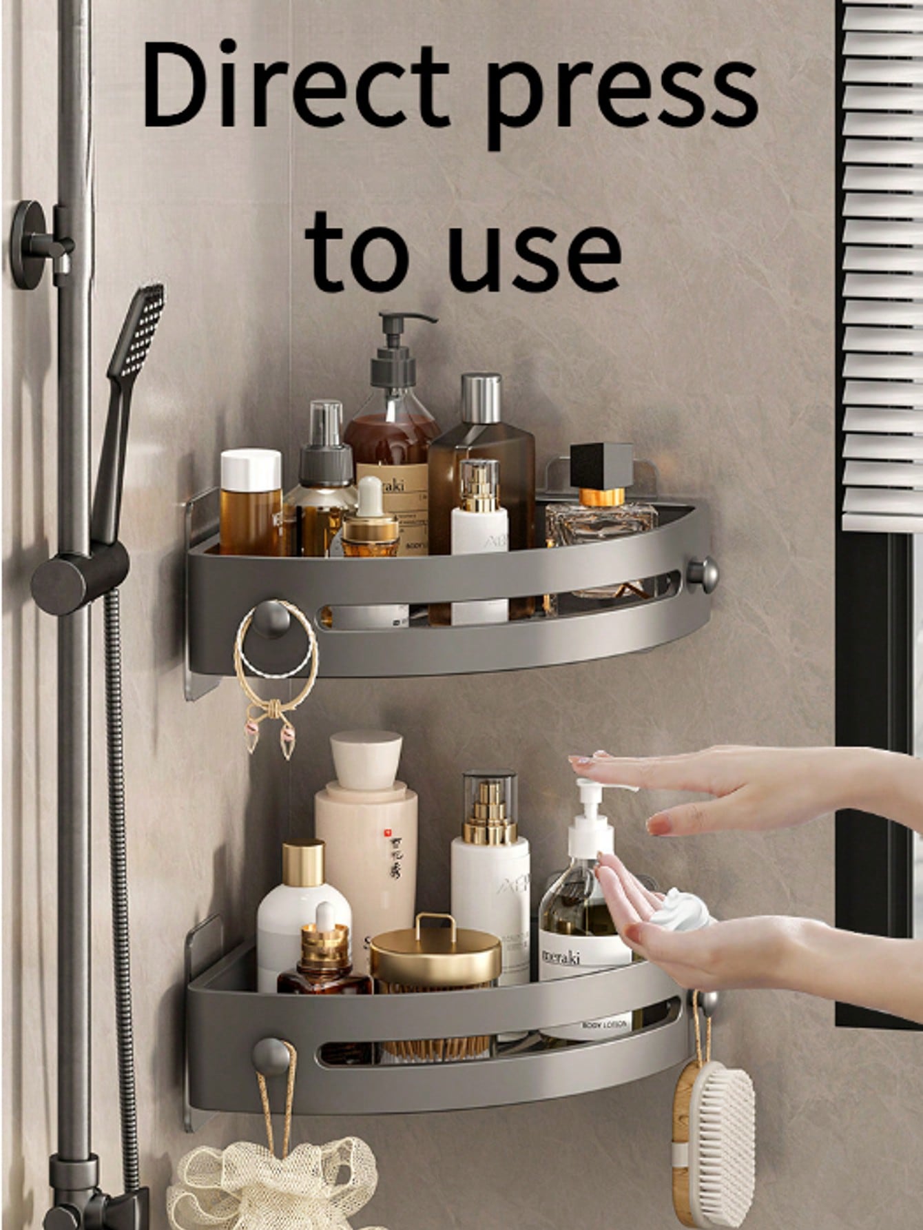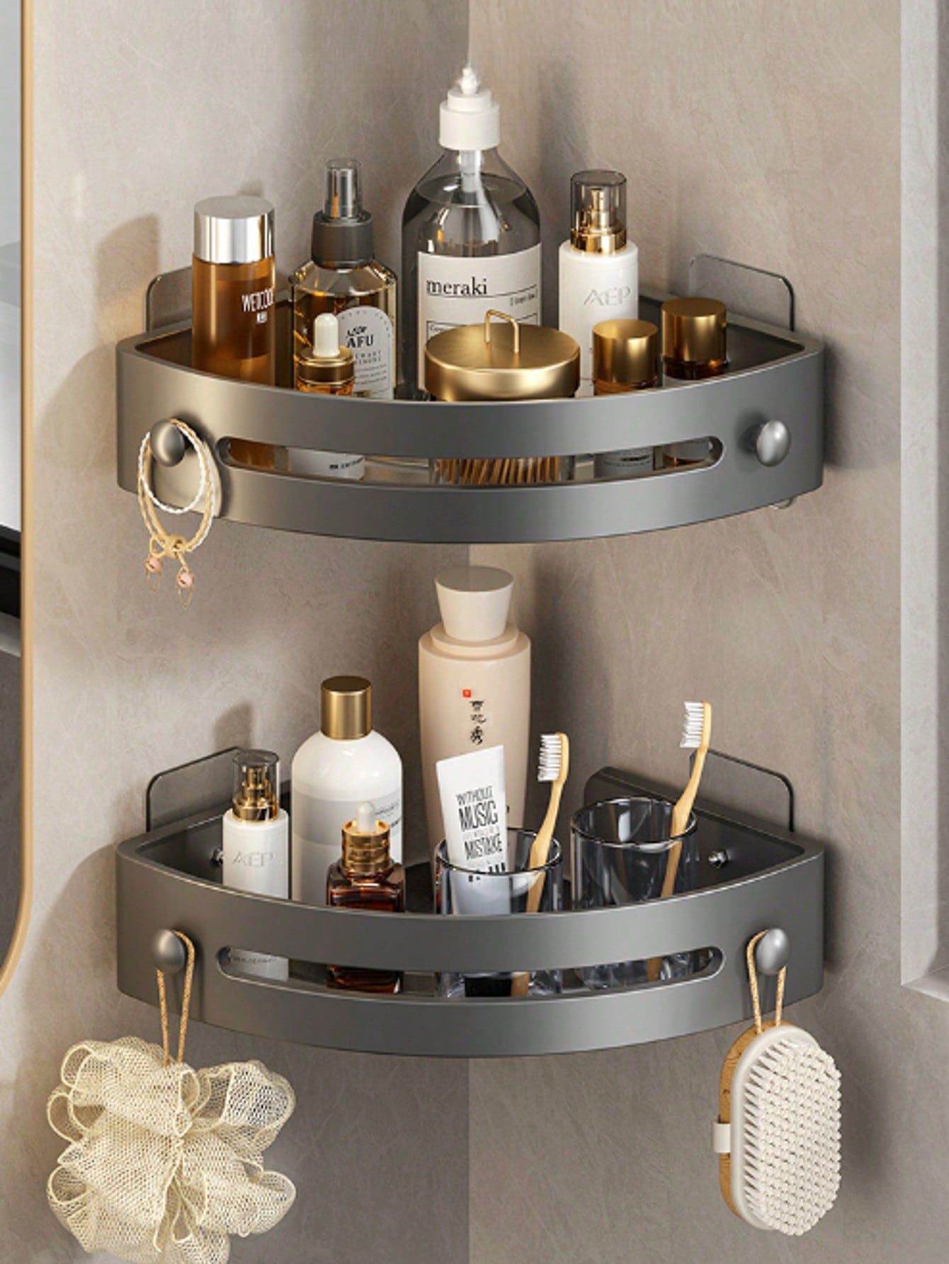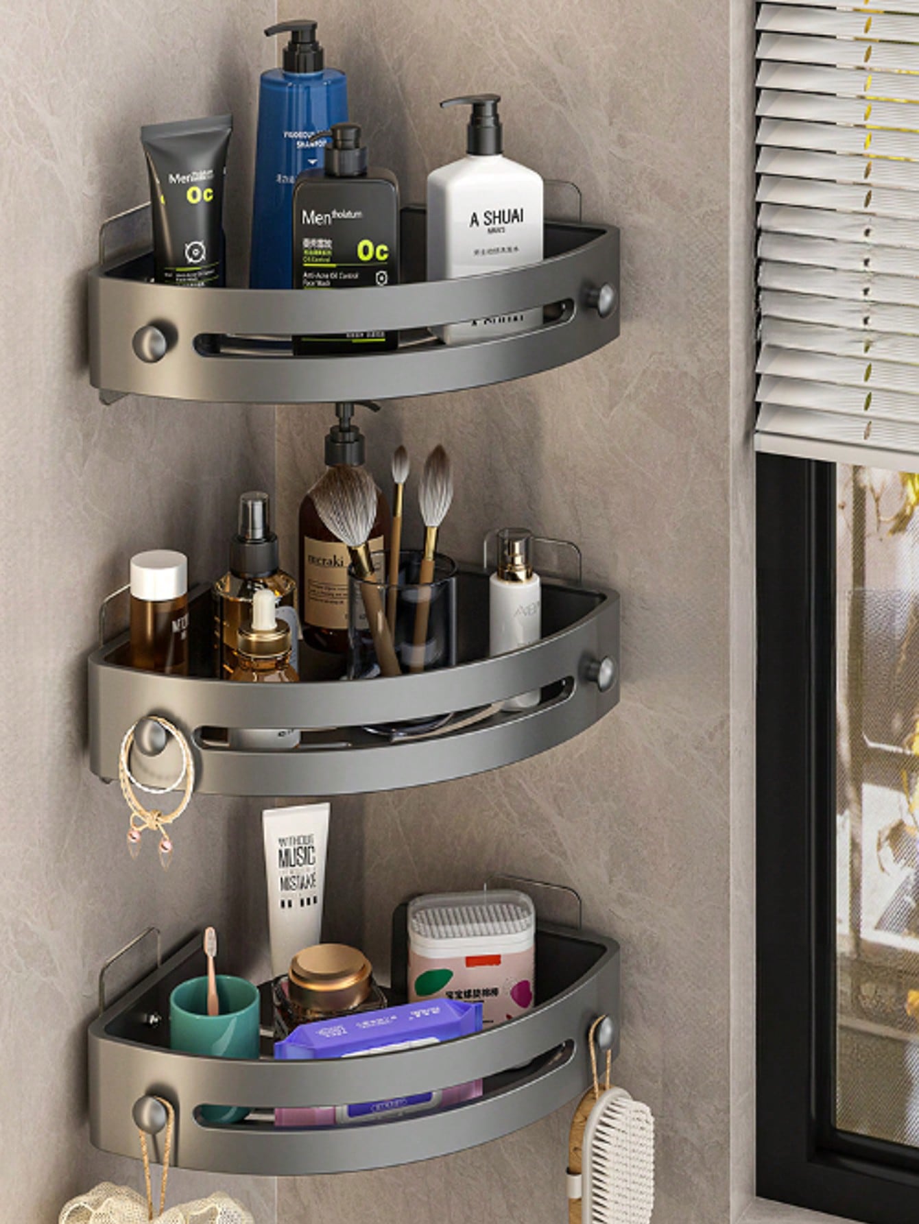 3 قطع رف حمام للركن، رفوف حمام لاصقة مع خطافات، تحتفظ بالشامبو والمستحضرات الصحية، تناسب أركان مختلف